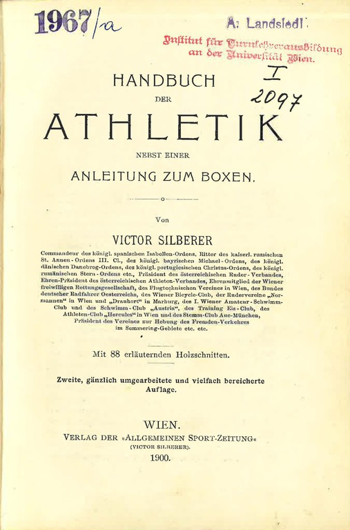 Silberer, Victor (1900). Handbuch der Athletik nebst einer Anleitung zum Boxen. Wien (2. Auflage): Verlag der Allgemeinen Sport-Zeitung (siehe Beiträge)