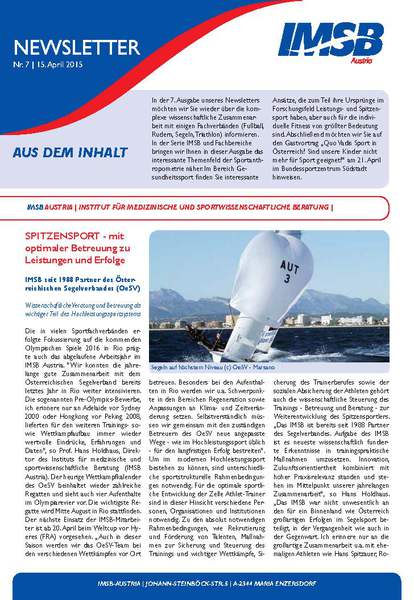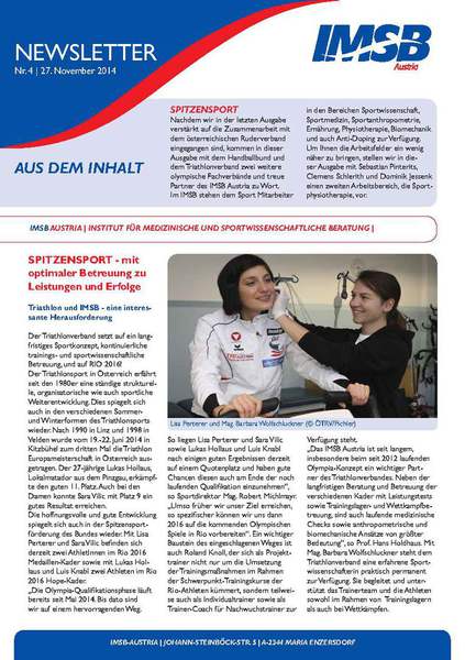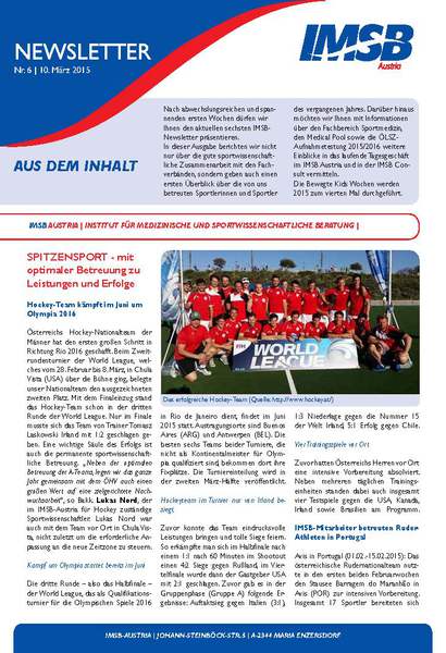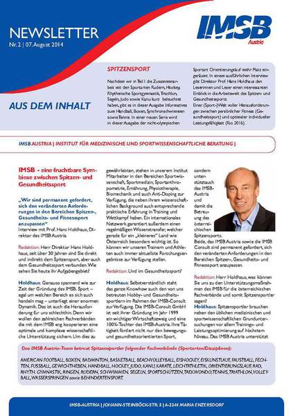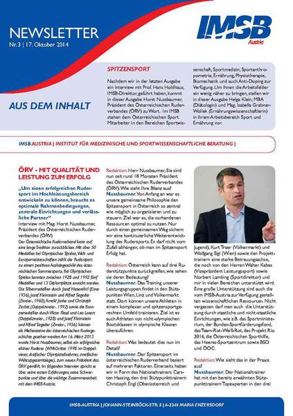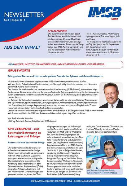 In den Jahren 2014 bis 2015 wurden vom Institut für medizinische und sportwissenschaftliche Beratung (IMSB Austria, heute Leistungssport Austria) sieben Newsletter herausgegeben und interessierten Adressaten (Sport, Journalisten, Funktionäre,...) per Mail übermittelt.